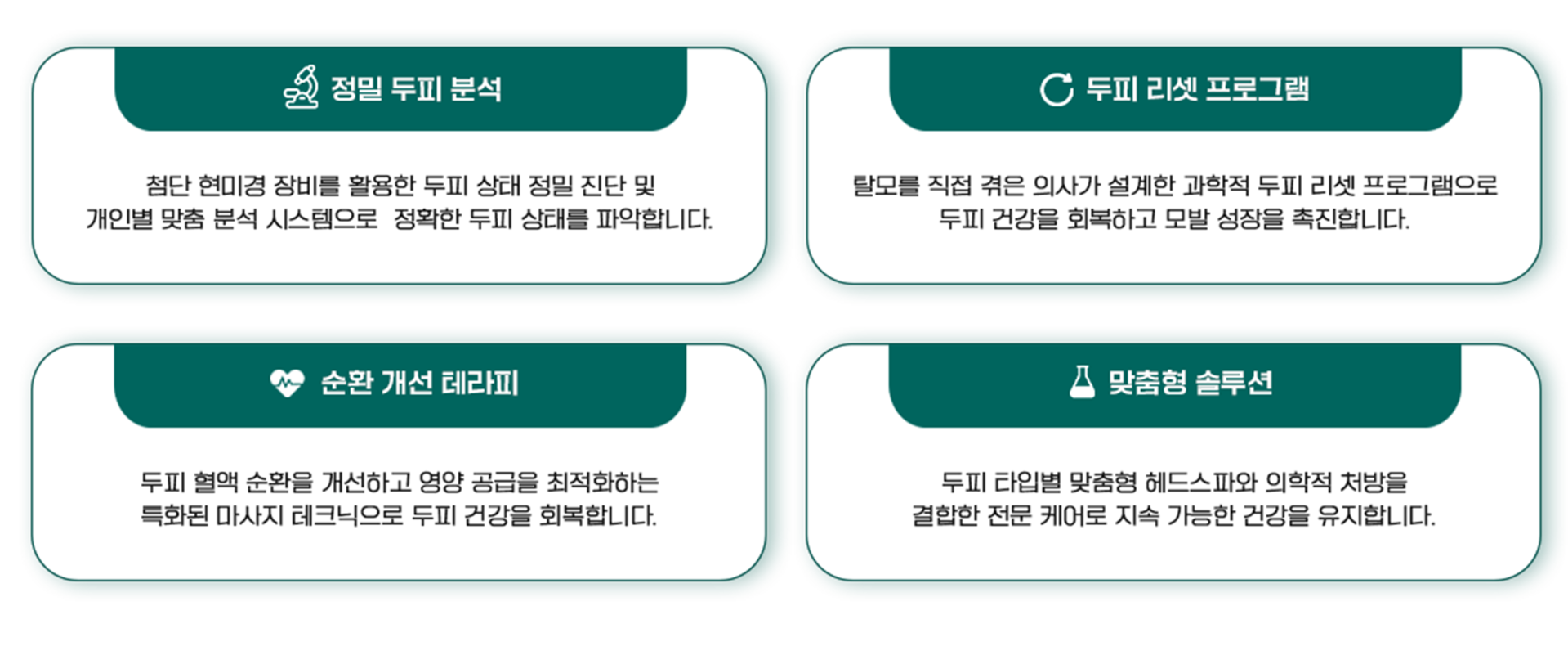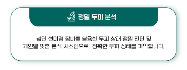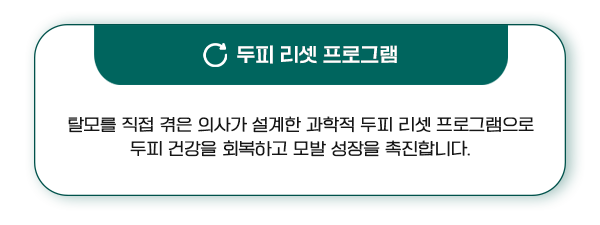 • 근본적인 두피 환경 개선과 맞춤형 케어를 통해 탈모 고민 해결의 해답을 제시합니다.