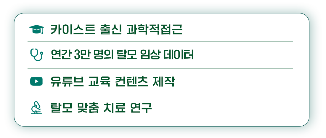 "환자의 입장에서 이해하고, 과학적 근거로 치료하며, 진정성 있는 정보로 탈모로